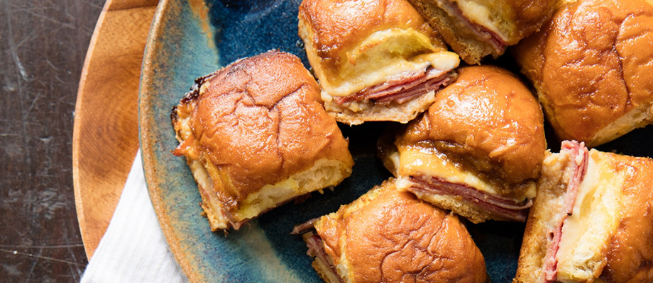 - Cut the rolls in half lengthwise to turn them into buns. Place the bottom halves in the slow cooker. Layer the bottom half with ham slices and Sargento® Sliced Provolone Cheese and place the top half back on.