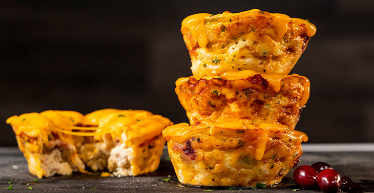 Packed with all the essentials – turkey, stuffing, mashed potatoes, sweet potatoes and cranberry sauce – along with eggs and lots of creamy Sargento® Shredded Cheddar Cheese, this satisfying dish is the perfect post-holiday mashup. Enjoy it in the morning with a hot cup of coffee or try it in the afternoon with a fresh green salad.