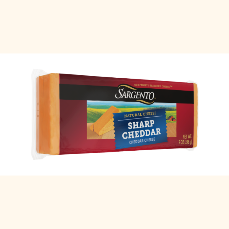 - Tangy and rich, 7 oz Sargento® Block Sharp Cheddar Natural Cheese amplifies everything from a simple grilled cheese sandwich to a fluffy souffle