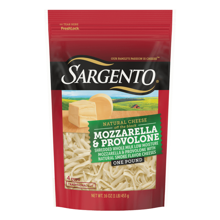 - Mild and creamy, Sargento® Shredded Mozzarella & Provolone with Natural Smoke Flavor Natural Cheeses, Traditional Cut make it easy to add Italian flavor to garlic bread, soup and pasta