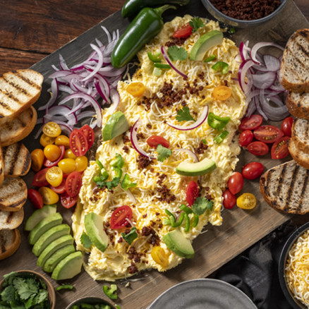 - Arrange all ingredients on a large board arranged in piles of color. Store extra ingredients and refill the board as needed.