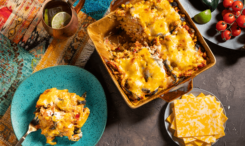 Tortillas, sautéed veggies and plenty of Sargento® Cheese Slices are layered and then baked until melty.